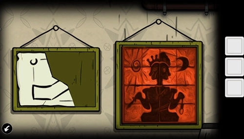 9、留意窗户场景里墙上挂着的图画右下角的图案,用刚获取的钥匙打开该场景中桌子下方的抽屉,获取【把手】。