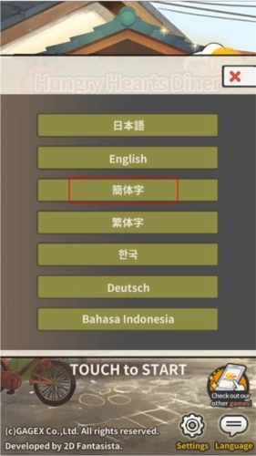 1、在本站安装并打开新众多回忆的食堂故事游戏,进入游戏界面后,点击右下角的语言设置选项。