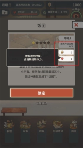 6、制作料理会消耗一定的金钱和体力,玩家需要时刻留意哦。