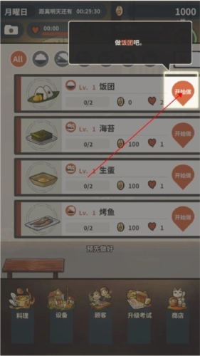 4、当店里有客人光临的时候,玩家就需要制作料理了,点击料理选项进入对应的页面即可开始制作。
