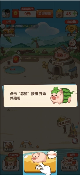 1、在游戏里,玩家得靠养猪来赢取红包,第一步就是点击养殖按钮开启养殖流程。