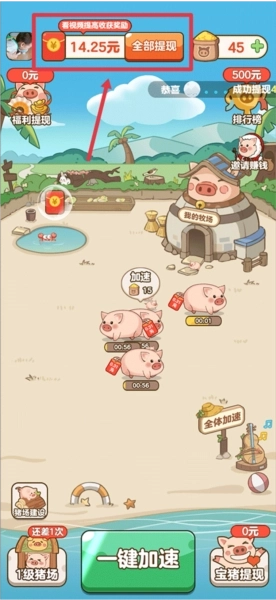 1、进行小猪养殖,待小猪成长至一定阶段后可领取红包奖励,不同等级的猪场对应养殖不同类型的小猪。