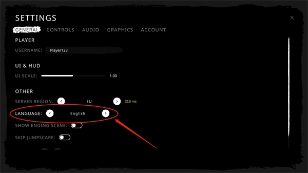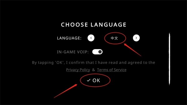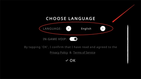 1、如下图所示,这是首次进入游戏时的界面,点击【English】右侧的按钮即可调整语言设置。