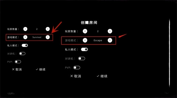 游戏设有两种模式,其一为【Escape】逃生模式,其二是【Survival】生存模式。