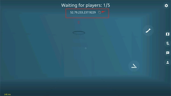 游戏开始加载后,界面最上方显示的那串代码就是房间号,你可以点击箭头指示的按钮复制它,再分享给朋友。