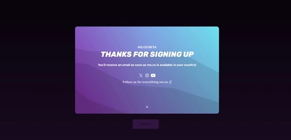 1、启动MO.CO,点击左下角的“SIGNUPFORBETA”选项。