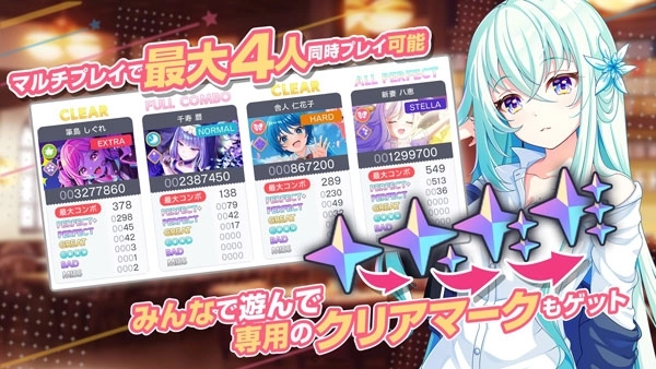 协力公演最多支持4名玩家一同进行节奏游戏。当你和其他玩家同时达成FULLCOMBO时,就能获取专属的通关徽章。