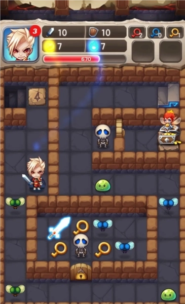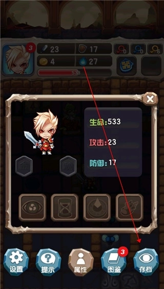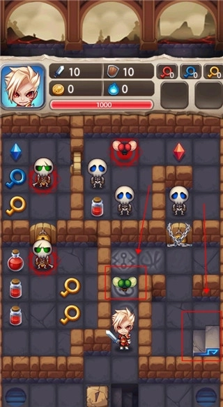 在游戏里,我们完成收集钥匙、挑战关卡的过程中,除了要运用智慧和逻辑推理外,更关键的是角色的成长轨迹——玩家需要收集红宝石与蓝宝石来强化角色的攻击和防御能力,收集血瓶以提升生命值上限,通过持续增强各项属性来逐步提高自身的战斗实力。