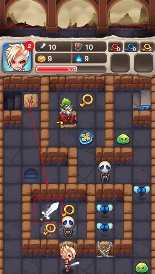 第一关你要应对一个魔法守卫和两名黄色骑士。黄色骑士的防御力比较高,得用技能攻击才能对其造成伤害。把这三个敌人都击败后,你就能得到一把青色钥匙了。