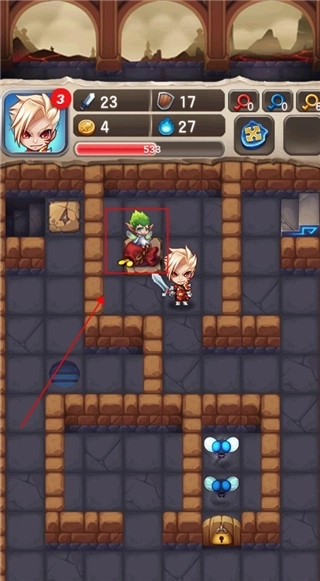 5、和敌人战斗时血量难免会下降,我们可以在楼层里搜寻红药水来恢复血量
