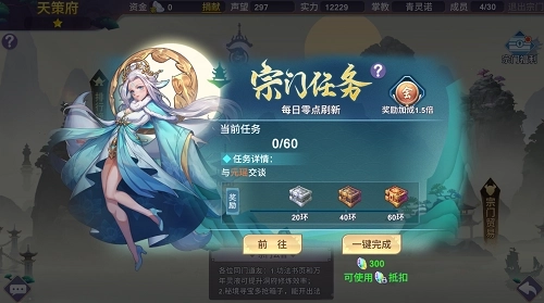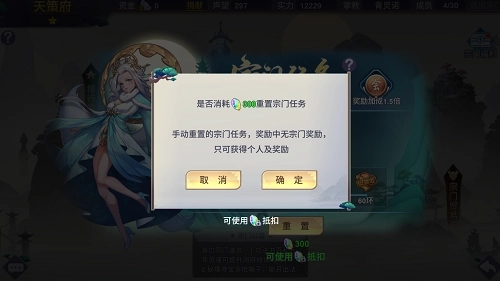 2、此外,宗门任务每日可重置一次,但重置后的任务将不再提供宗门奖励与个人奖励。