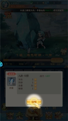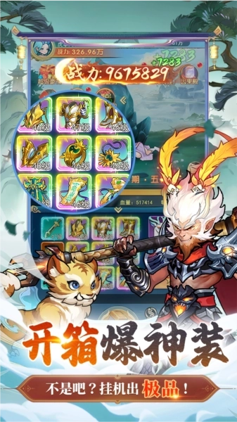 威风凛凛的侠客、深海的龙女、从山里蹦出来的小猴子,还有一块神奇的石头,敲它敲它,各种极品装备就从石头里掉出来,身边跟着各类奇珍异兽,一同飞升渡劫!
