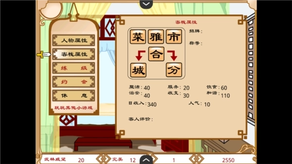 6、游戏中玩家需要经营同福客栈,同时也要顾及任务的成长和提升。期间时间为100个游戏天,100天之后需要与BOSS对决。