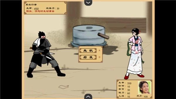 3、与敌人战斗需要选择先手或者后手攻击。一般来说后手效果卓著,但是需要消耗掌柜技能点;