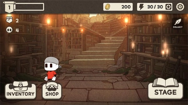 在主界面点击inventory,就能装备各式各样的帽子以运用其独特能力,还可以对自己的装备进行升级。