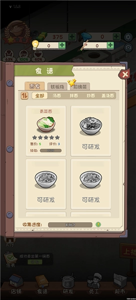 你可以不断拓展自己的面馆版图,在游戏推进的过程中,逐步推出各式各样的新菜品以及丰富多样的服务。