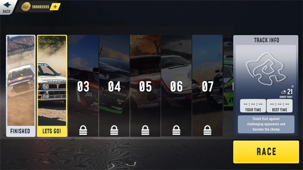 3、感受在崎岖不平的道路上体验拉力赛车的刺激,速度与策略在此交汇,每条赛道都考验您的刹车、漂移和车辆调校能力。