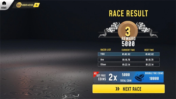 4、驾驶你的车辆以最快的速度重现终点完成比赛,完成比赛后会根据你的成绩来获得不同的奖励。