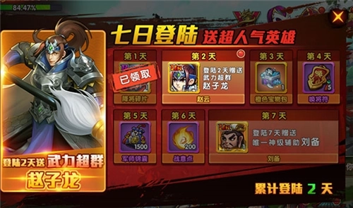 次日登陆更可获得SSR级英雄赵云。