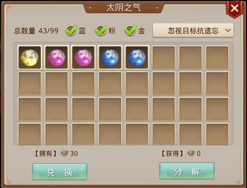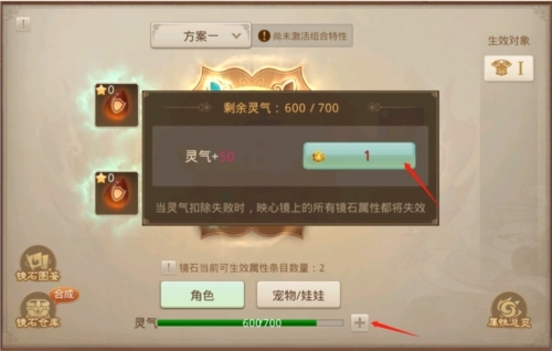 b.我们可以点击映心镜页面的“+”按钮,通过消耗镜花之源来补充映心镜的灵气。每日任务会为我们提供2个镜花之源,每个能补充50点灵气,每日任务的补给量刚好满足我们的日常消耗需求。