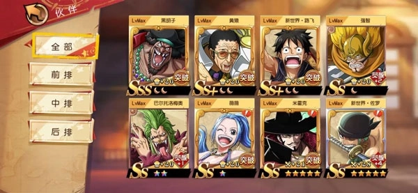 1、在《航海王启航》游戏里提升战力,完成每个章节的关卡挑战,以此加快提升海贼团等级,进而解锁伙伴等级上限。