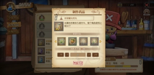 制药屋等级大概3天就能升到4级,到了第4天,我就计划用100点活力去采集绿色草药花,剩下的100活力则用来把之前分解得到的材料制作成药品——每制作一个药品能获得20多的经验,这样升级速度会很快,用不了多久就能把制药屋升到5级、6级了。