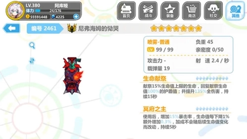 4、祈愿装、尼弗海姆的恸哭(海拉),这款装备的获取难度较高。其效果为献祭自身15%的生命值,随后回复相当于损耗生命值75%的护盾,同时还能提升1.1倍的全伤害。此外,它会增加10点暴击率,并且角色生命值越低,暴击率就越高。这款装备在当年被玩家戏称为“七口登仙露”,在众多辅助装备里,它的伤害输出稳定,增伤幅度也比较大,依靠护盾效果辅助攻坚,是伤害类喷雾中的核心装备之一。