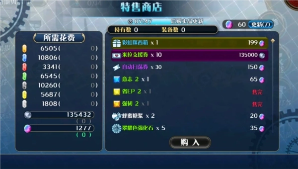 特售商店每天都会推出优惠活动和相关商品,这些商品通过BC、米拉两种方式进行贩售。在游戏前期,大家可以考虑适量购买魔法道具。因为这篇内容主要讲解系统相关的内容,具体的购买建议会在后续的消费专题中详细说明。