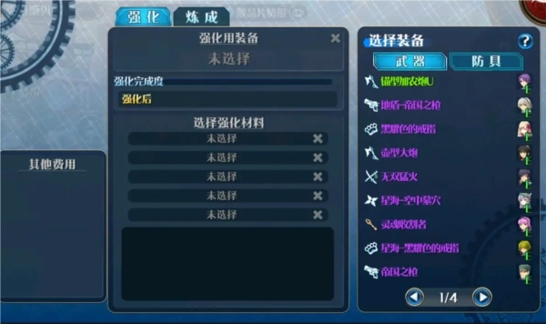 改良(强化/炼成):简单讲就是给武器做强化,强化武器同样需要用到材料和米拉;当武器改良到+5阶段后,就可以开展装备炼成操作,也就是把武器升级到下一个品质等级。