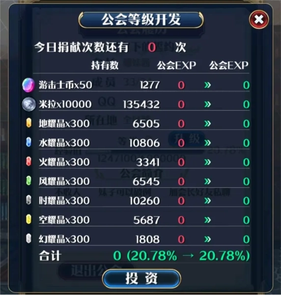 工会建设操作指引:进入工会页面后,依次点击“基本信息”与“升级”选项,即可打开捐赠界面。每日捐赠次数上限为6次,可用于捐赠的材料包括以下这些: