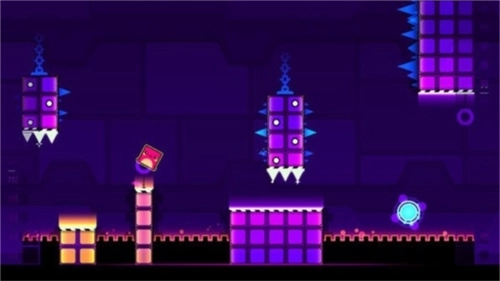 这款游戏的操作十分简易,作为主角的方块会自主朝着屏幕右侧移动,我们仅需点击屏幕,让它跃起避开途中的各种障碍和陷阱就可以了。