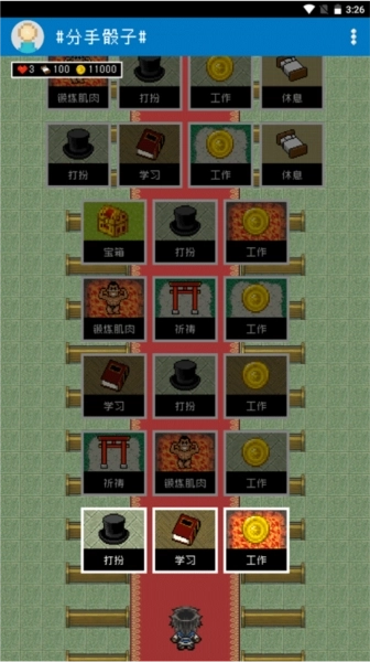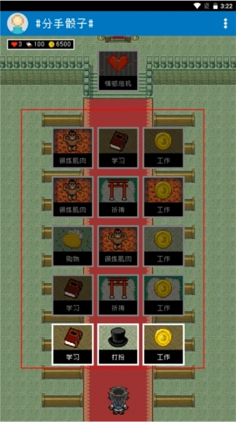 2、当快要到100天纪念日前,你需要选择去做上方其中一件事。比如学习的话,你就需要去图书馆,通过掷骰子的方式提升自己的等级,学习就是提升智慧,骰子数量越高,你的智慧等级就会越高。