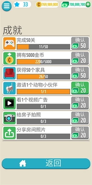 5、通过完成各式各样的任务来赢取奖励,并用这些奖励购买琳琅满目的家具,装点属于自己的口袋小屋。