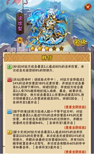 2、不少玩家抽到第一个橙将就立刻换掉了原来的武将,其实不必急于这样做。紫色武将的升级和进阶相对容易,突6的紫将实力甚至会超过突4的橙将。而且培养橙将需要刷碎片,过程比较繁琐,不如先用紫将打副本过渡,到游戏后期再考虑更换橙将。