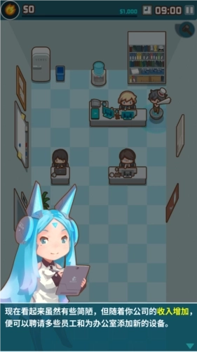 虽然目前的办公室看起来有些简陋,但随着公司收入的增长,你可以通过聘请更多员工或添置新的办公设备来改善办公环境。为了让玩家获得更丰富的游戏体验,小编在此为大家简要介绍一下该游戏的基本操作玩法,一起来看看吧。