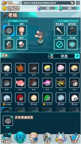 4、在老板界面中,你可以为老板搭配各类装扮,也能给老板配备不同的警告道具。不过要注意,这些装扮和道具都需要消耗金币才能获取,你得先积攒足够的金币才行。