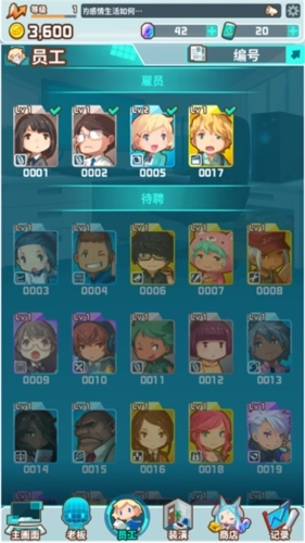 5、在员工界面,您能够查看当前雇员以及待聘人员的信息,同时也可以在此为自己的员工进行升级操作。