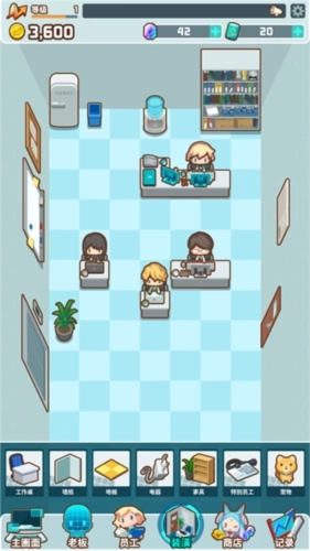 1、别出心裁的办公室模拟经营游戏题材,丰富有趣的游戏内容。