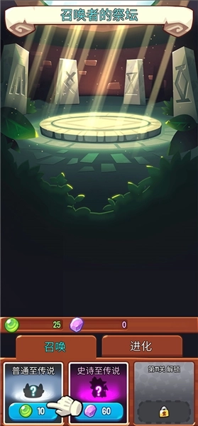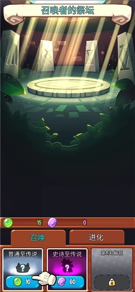 2、抵达召唤者祭坛后,点击下方的召唤按钮,可选择普通召唤或史诗召唤,两种召唤方式所需的材料各异,召唤出的怪物也有所不同。