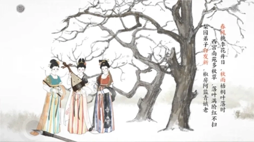 11、四时之景(隐藏):解锁条件是在春夏秋冬四个季节都停留过一次。初始状态下的枯树对应冬天;春天时需要在树上画一朵小花;夏天则要在树上画圈,若此操作不奏效,也可以选择在梨园弟子头上画圈,但需注意离对方越远越好,否则会直接触发“白发新”;秋天对应的是画斜杠。将这四个季节的操作都完成一遍后,就能解锁该隐藏内容了。