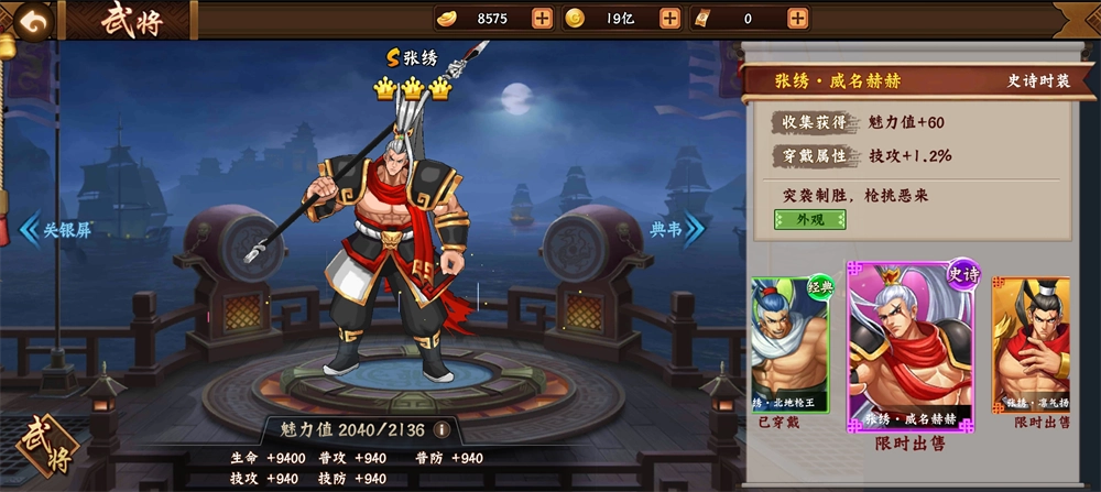 总体而言,“北地枪王”张绣技能debuff附加的流血效果能无视目标的血量与防御属性,这让低战力玩家在对抗高战力玩家时,输出不再显得“刮痧”无力。只要精准把握张绣的技能特性并加以利用,就能瞬间爆发出强劲的输出伤害,这位PVP战场上的“大杀器”,可千万别再错过啦!