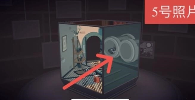 2、照片2藏在铁丝网地板的下方,打开滑盖后转动轮盘就能拿到。