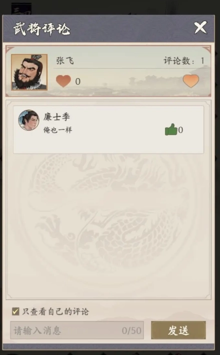 -若你对某位武将的生平经历或立绘形象有自己的见解,都能在此发表评价,让其他主公也能看到你的独特看法哦。