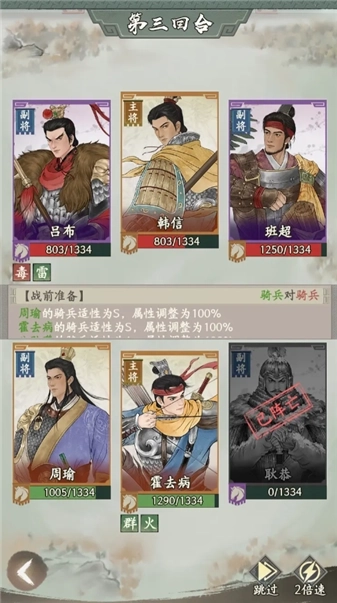 2、高品质武将与低品质武将进行合成时,必然会产出高品质武将,并且合成操作还能够对武将的特性数量和类型产生改变。