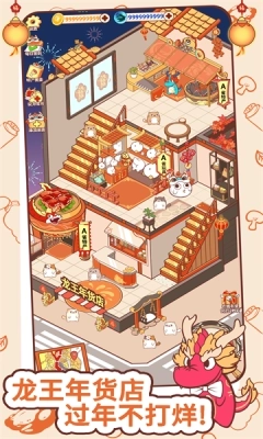 这是一款玩法简单的经营游戏,以新颖的春节为主题,玩家将开设一家过年不打烊的年货店,用心服务每一位顾客,还能雇佣店长与员工,轻松实现躺赚!它适合喜欢模拟经营类游戏的玩家,快让我们一起享受经营的乐趣吧!