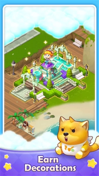 3、巧妙融合三消、合并与经营三种玩法,玩家需借助三消游戏获取资源。
