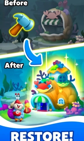 合并海洋是一款充满趣味的模拟消除闯关游戏,玩家通过合并相同的食材或物品,能够得到更高级别的食材与工具,这些可以用来增强餐厅的烹饪实力,解锁新的菜谱以及创新的料理。每一次合并都有机会生成新元素,玩家持续合成来发掘更多可能性,体验升级和拓展带来的满足感。