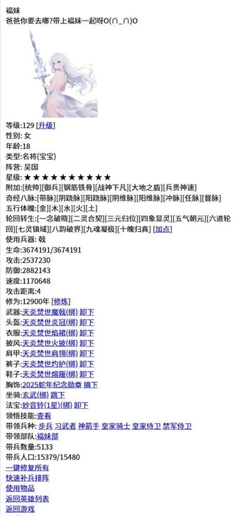 2、新增兵将转生功能,兵将最多可以转生10此,获得大量自由分配的属性点。副本增加转生材料掉落。