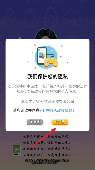 1、游戏打开选择同意
