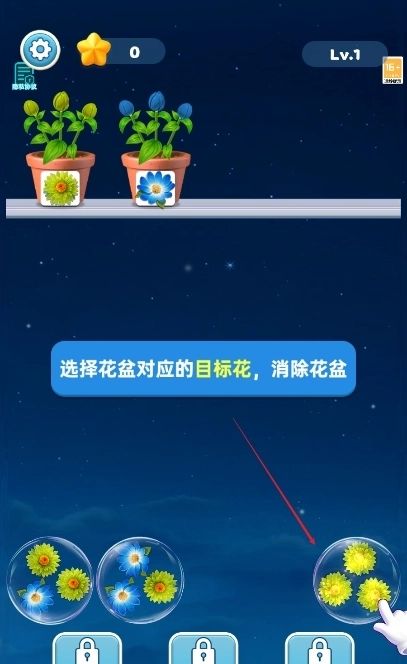 2、选择花盆对应的目标花,消除花盆